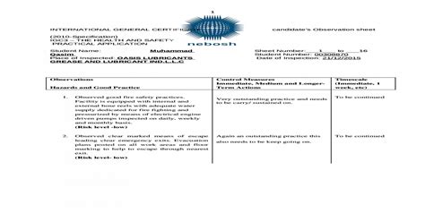 Read Online NEBOSH IGC 3 PRACTICAL PAPER SAMPLE Library Binding